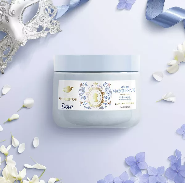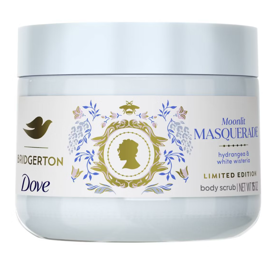 Inspirado no clima elegante e romântico de Bridgerton, o Dove Beauty Limited Edition Bridgerton Body Scrub – Moonlit Masquerade oferece uma experiência de cuidado sofisticada com fragrância floral de hortênsia e glicínia branca.